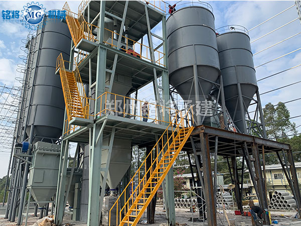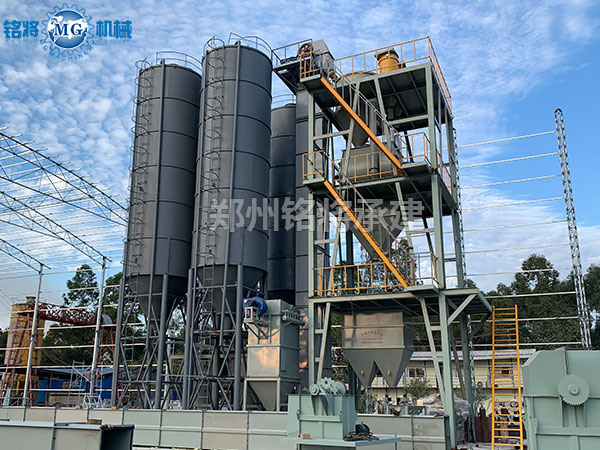 廣西南寧黎塘鎮華塑建材時產10噸干粉砂漿生產線,由鄭州銘將承建,質量好,效率高,節能環保。
